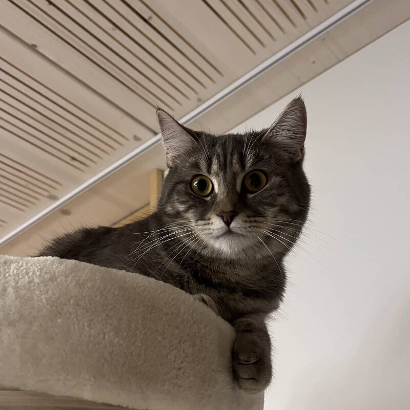 Trotz meines kleinen Unfuges werde ich von meiner Familie total vergöttert. Ich habe nämlich auch eine unglaublich verschmuste und liebevolle Seite: Am liebsten liege ich so nah wie möglich bei meinen Menschen, schlecke sie aus purer Zuneigung und kuschle bis zum Einschlafen. Mein Schnurren? Das kann so laut sein, dass es das ganze Zimmer erfüllt.